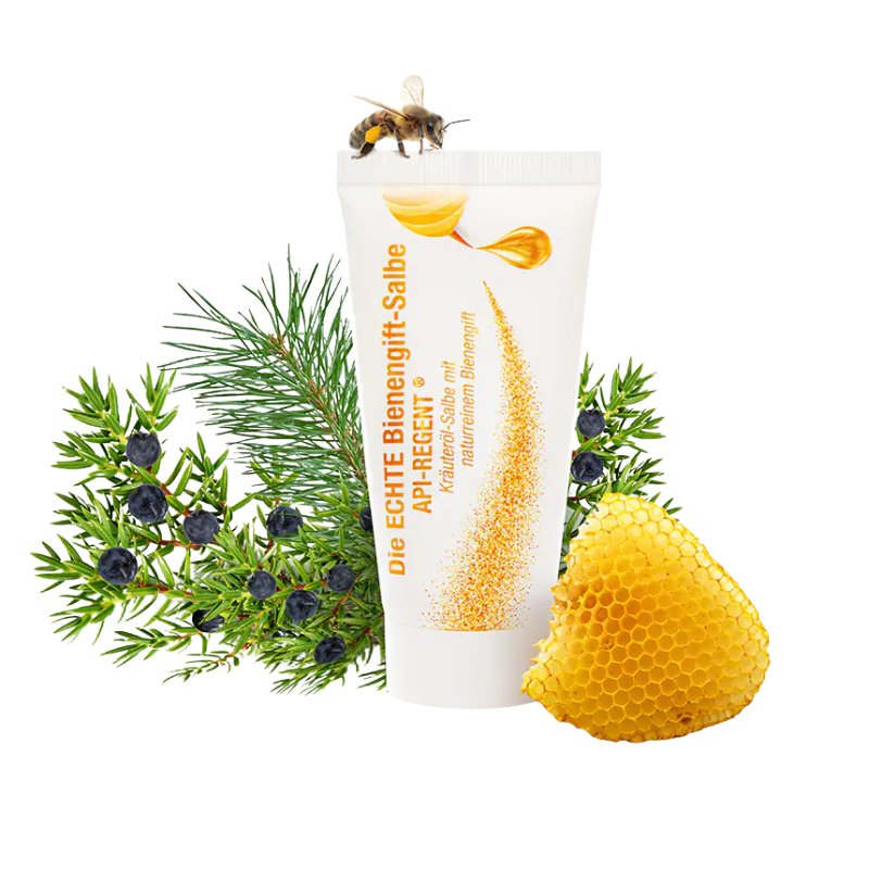 Bereits im 18. und 19. Jahrhundert waren die Apotheker des Königreichs Böhmen für ihre Expertise mit Kräuter-Ölen und -Essenzen bekannt. Genau aus dieser Tradition stammt die Rezeptur der API-REGENT®. Feinste ätherische Öle von Zirbelkiefer, Rosmarin, Wacholderbeeren, Pfefferminze und Eukalyptus werden durch die natürliche Kraft von naturreinem Bienengift höchster Güte intensiviert. Das Ergebnis ist eine Massage-Salbe, die auf der Haut angenehm kühlend empfunden wird, ganz ohne wärmende Wirkstoffe und ohne chemische Konservierungsstoffe.